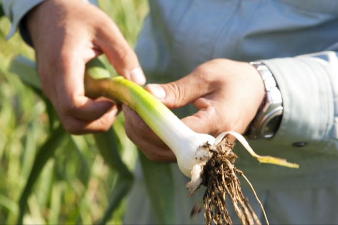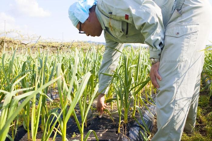 松尾農園が育てる「九州八片にんにく」。