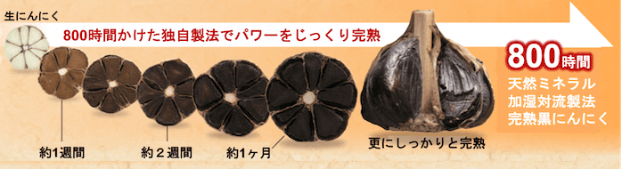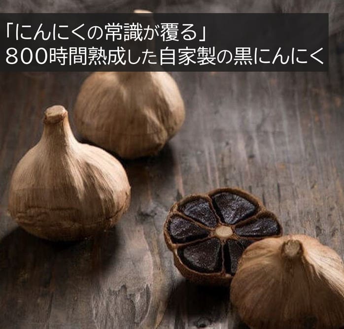 農薬不使用にんにくを高温多湿の環境で、丁寧に800時間という長い期間をかけて熟成・貯蔵させることで、
