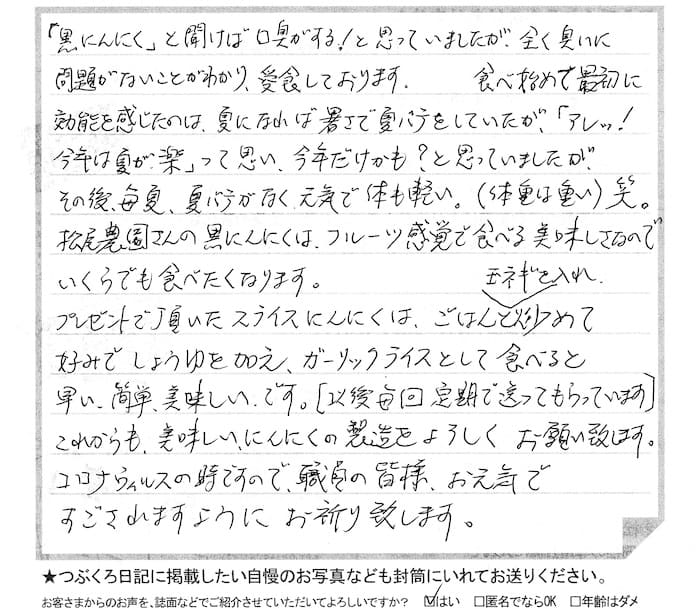 その結果、黒にんにく「つぶくろ」を食べて、